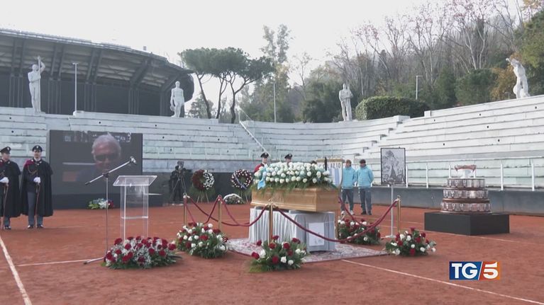 Rappresentanti del mondo dello sport e della politica e tanta gente comune per l'ultimo omaggio a Nicola Pietrangeli, leggenda del tennis italiano.