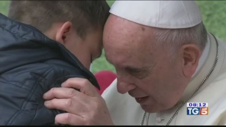 Papa Francesco consola un bambino