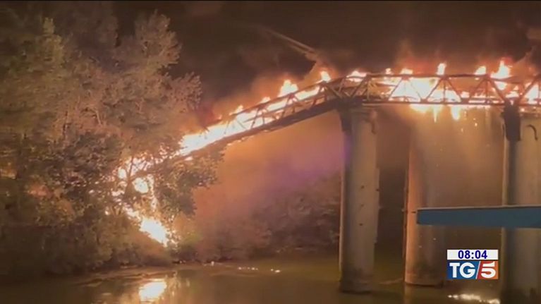 A Ostiense, una delle aree della movida di Roma, il ponte dell'Industria è andato a fuoco e alcune parti sono crollate nel Tevere.