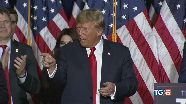 Trump trionfa in Iowa con un distacco record di quasi 30 punti sul rivale De Santis ed esulta