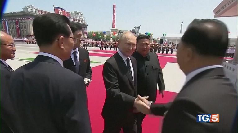 Tappeti rossi, danze, marce militari, accoglienza regale per Putin in visita in Corea del Nord.