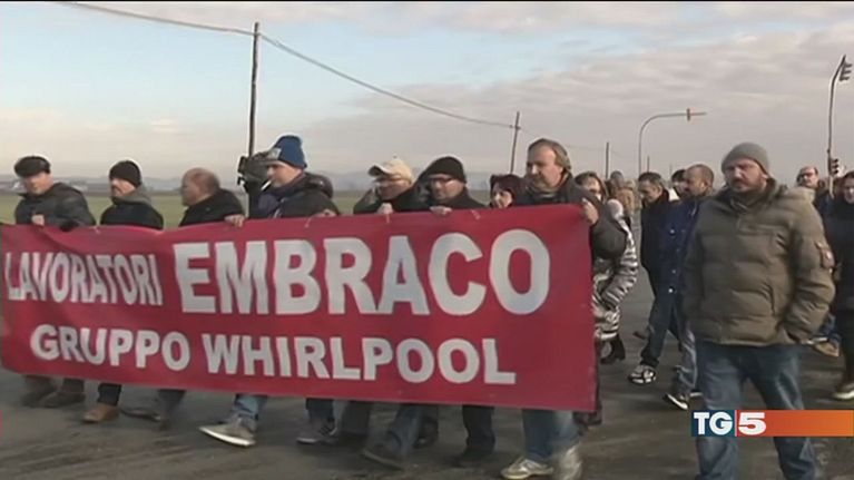Riva di Chieri, lavoratori della Embraco in corteo contro i 497 licenziamenti annunciati.