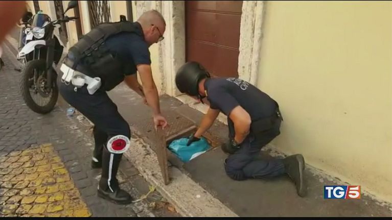 Nel centro di Roma i tombini trasformati in piccoli magazzini dai venditori abusivi.