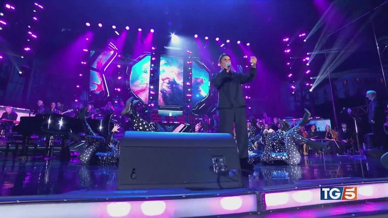 Accanto a lui, sul palco, moltissimi volti noti della musica italiana.