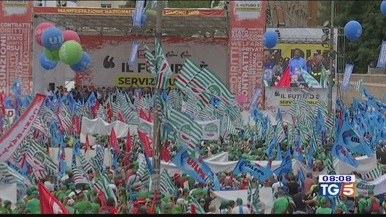 Grande manifestazione ieri a Roma dei sindacati Cgil, Cisl e Uil per il rinnovo dei contratti e un piano straordinario di assunzioni nella pubblica amministrazione.