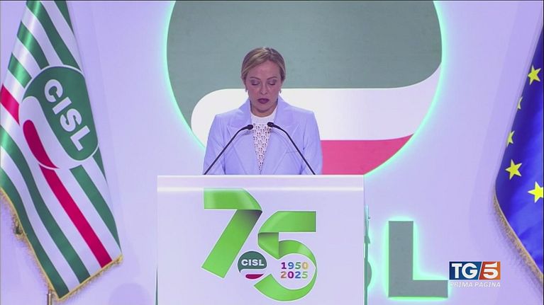 Dal palco della Cisl Giorgia Merloni celebra i mille giorni di governo.