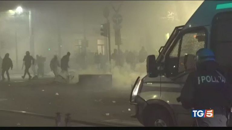 Gli anarchici scatenano la guerriglia urbana in centro a Torino.