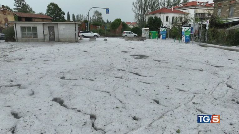 Violenta grandinata in Piemonte sull'alessandrino: strade imbiancate e numerosi disagi e incidenti. Al sud continua l'ondata di calore.