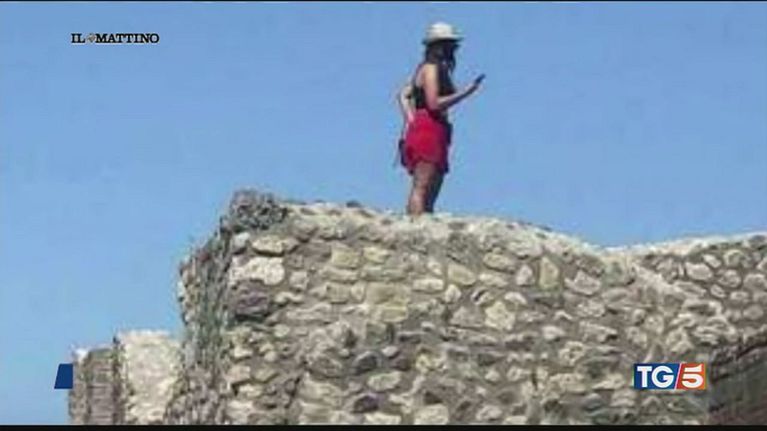 Polemiche sullo scatto che ritrae una turista sul tetto di un edificio degli scavi di Pompei, ora è ricercata e rischia una multa da 3.000 euro.