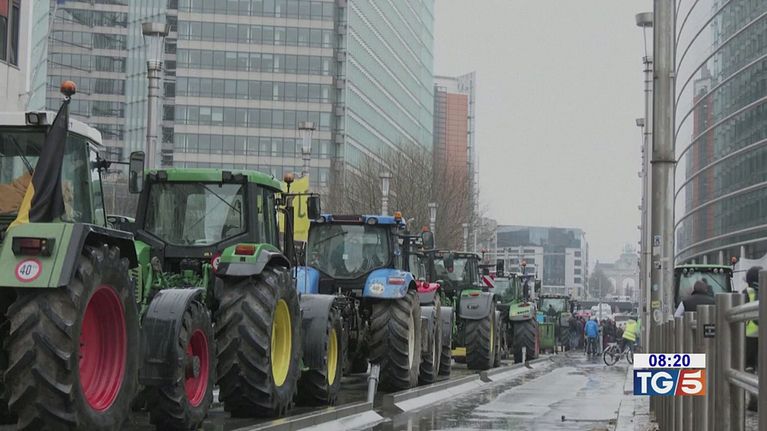 La città paralizzata da centinaia di trattori nel giorno del vertice dei ministri dell'agricoltura.