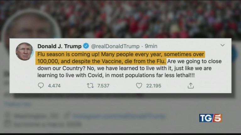 "Covid meno letale dell'influenza, impariamo a conviverci" bufera di polemiche su Trump che torna alla Casa Bianca e toglie la mascherina.
