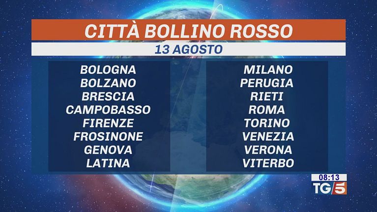 Picco dell'ondata di caldo con 16 città da bollino rosso nella giornata di oggi.