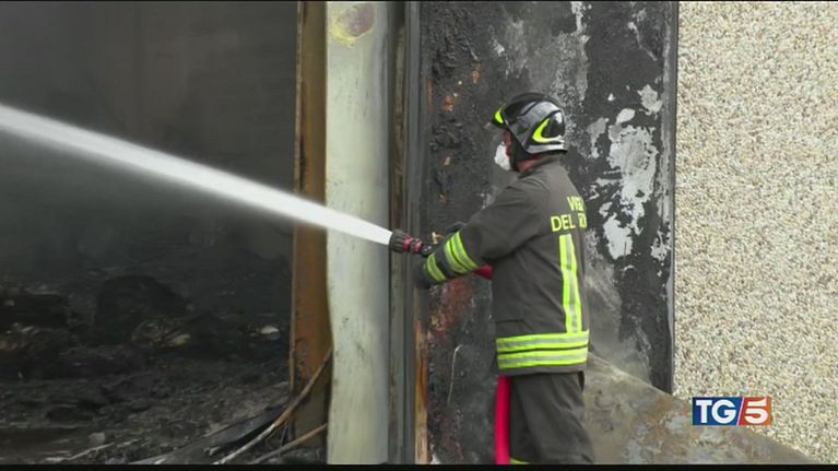 Settimo milanese, in fiamme un deposito di stoccaggio di rifiuti speciali.