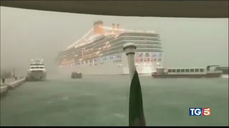 Nuova tragedia sfiorata nella laguna veneziana, una nave da crociera ha sbandato rischiando di schiantarsi sulla banchina.