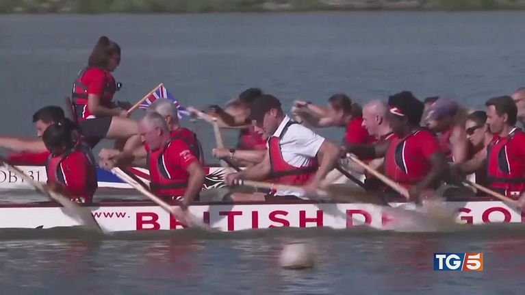 Singapore, William partecipa a una gara di dragon boat in una manifestazione che promuove nuove manifestazioni per l'ambiente