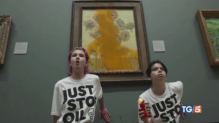Il dipinto imbrattato per dire no ai combustibili fossili, il gesto sconsiderato di due attiviste