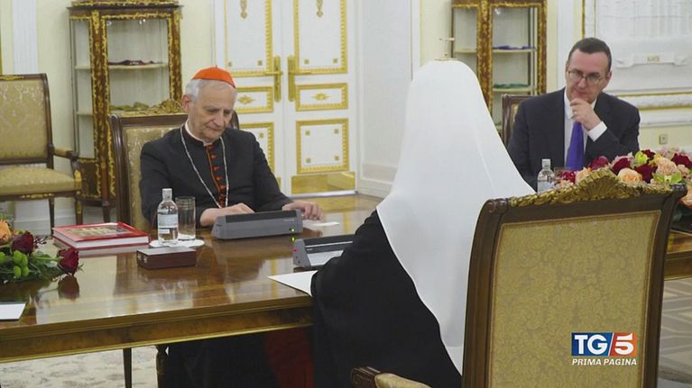 Il cardinale Zuppi ha incontrato a Mosca il patriarca Kirill.