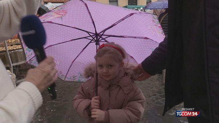 È tornata a volare sulla Capitale la Befana e, nonostante la pioggia battente, tanti romani ma soprattutto molti turisti hanno affollato, come da tradizione, Piazza Navona. Aiutata dall'autoscala dei vigili del fuoco, la Befana si è calata dalla terrazza della chiesa di Sant'Agnese per donare, una volta a terra, dolci e caramelle ai bambini che l'attendevano felici ed emozionati.
