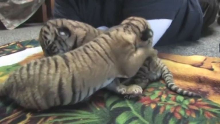 Allo zoo della Louisiana allattano i due tigrotti orfani col biberon