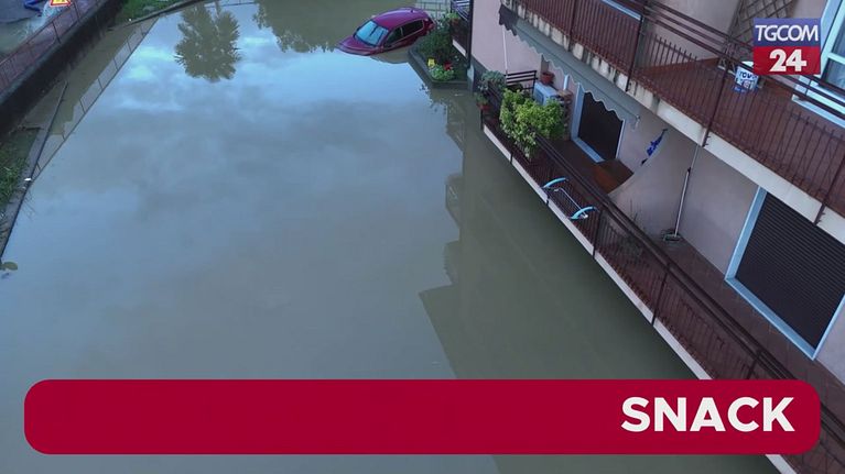Le immagini mostrano un condominio interamente circondato dall'acqua