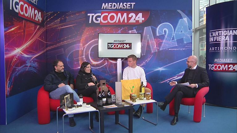 Ospiti dello Speciale di Tgcom24 ad Artigiano in Fiera 2023 Giuseppe Ranieri (Azienda Agricola Carusel), Maria Laura Calarco (Vigne Calarco), Alessandro Danti (Danti tartufi)