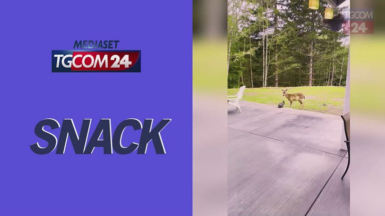 Quando la realtà supera la fantasia... Esattamente come accade nel celebre film di animazione "Bambi" un cucciolo di cervo gioca con un coniglietto. Il tenero filmato è diventato virale sui social.