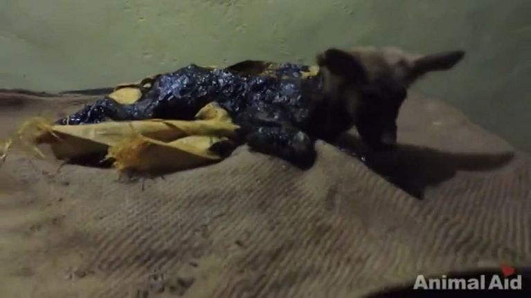 Cagnetto salvato dal bitume