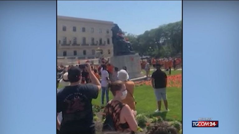 Monta la protesta a seguito della scoperta di centinaia di tombe senza nome, tante di bambini, scoperte nei pressi di ex scuole residenziali in Canada. Giovedì, a Winnipeg, i manifestanti hanno imbrattato e abbattuto la statua della regina Vittoria che si trovava di fronte all'Assemblea legislativa della provincia canadese di Manitoba.