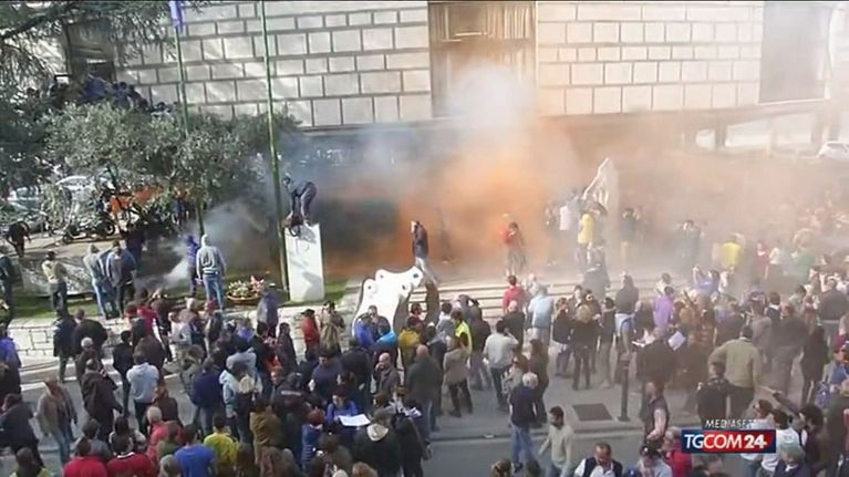 Carrara, tensione davanti al comune