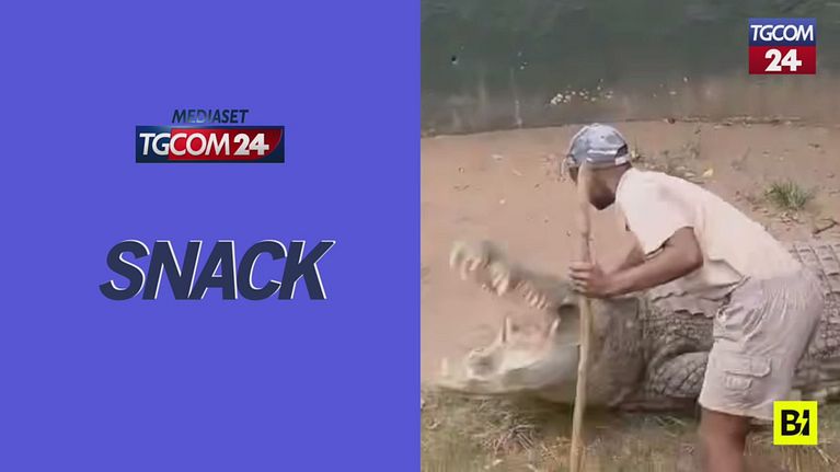 L'uomo stava pungolando il rettile con un bastone davanti al pubblico, quando l'animale si è ribellato e l'ha azzannato.