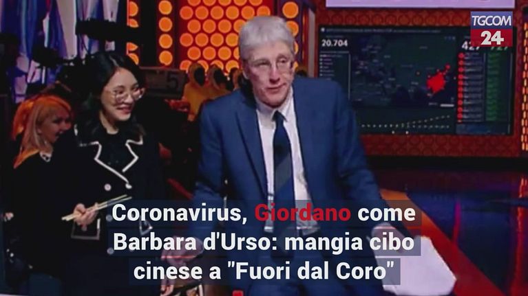 Il giornalista in studio si concede un involtino primavera per sfatare le preoccupazioni sul virus
