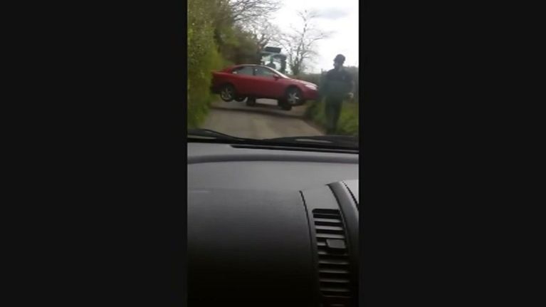 Gb, l'auto ostacola il passaggio e il contadino impaziente...