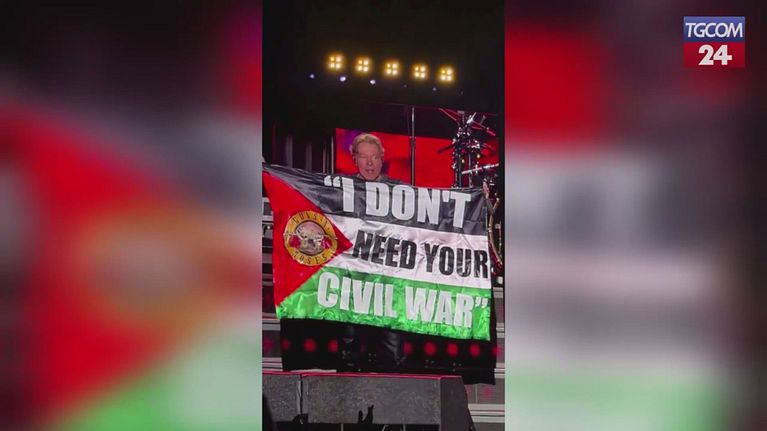 I Guns N' Roses suonano "Civil war": Axl Rose mostra la bandiera della Palestina