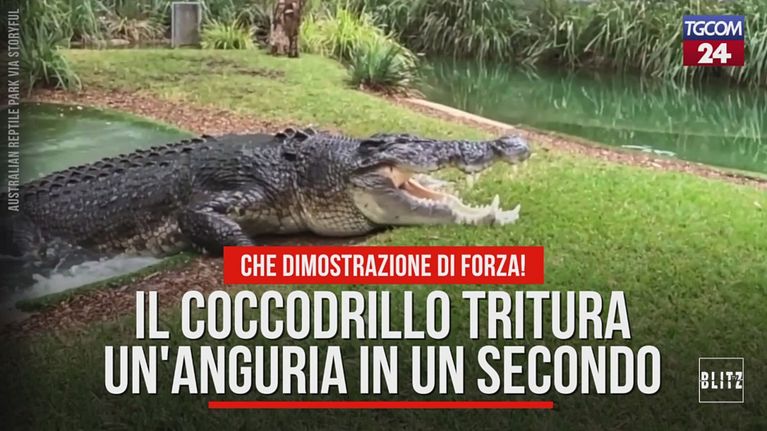 Il coccodrillo tritura un'anguria in un secondo