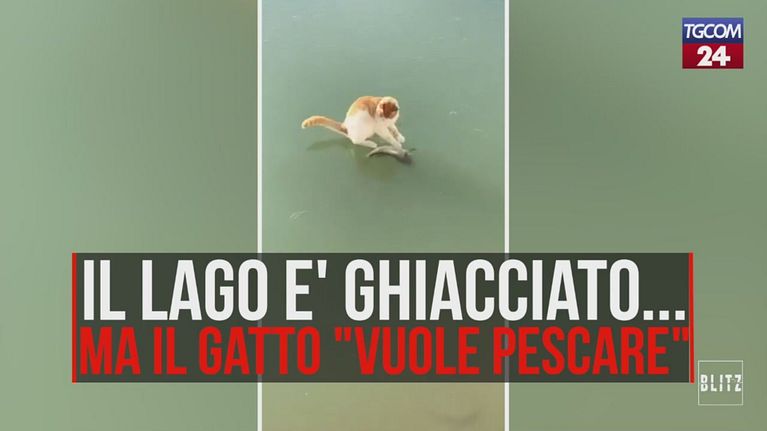 Il lago è ghiacciato, ma il gatto "vuole pescare"
