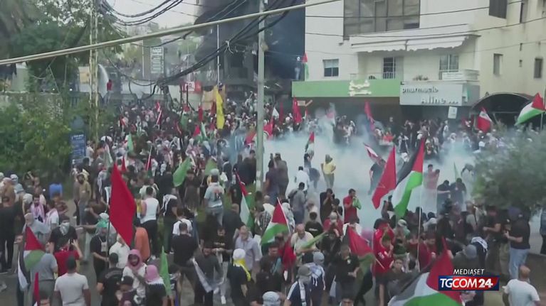 Decine di migliaia di combattenti di Hezbollah sono pronti alla guerra: lo ha detto un alto rappresentante del Partito di Dio alleato dell'Iran, parlando a una folla di seguaci del movimento jihadista sciita radunati nella periferia sud di Beirut. E scontri e violenze a Beirut nei pressi dell'ambasciata degli Stati Uniti in una manifestazione di protesta per i bombardamenti israeliani a Gaza.