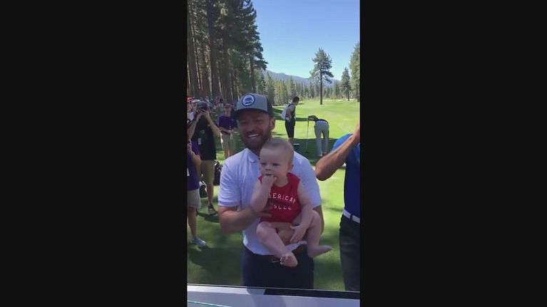 Durante un torneo di golf, la star è stata celebrata dal pubblico per un breve siparietto con il figlio di un suo fan