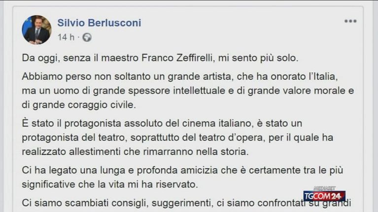 La scomparsa di Zeffirelli, il ricordo di Silvio Berlusconi
