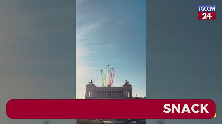 Le Frecce Tricolori in volo su Roma per la Festa delle Forze Armate
