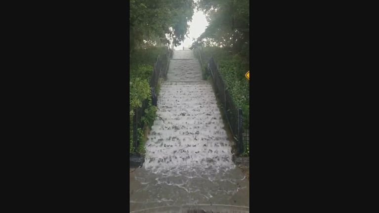 Le scale a Brooklyn diventano una cascata dopo il nubifragio