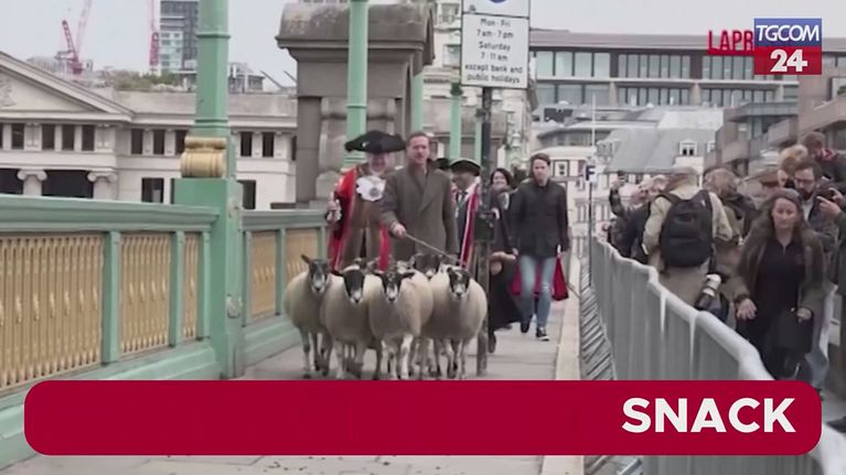 Londra, l'attore inglese Damian Lewis pascola le pecore per le strade della città