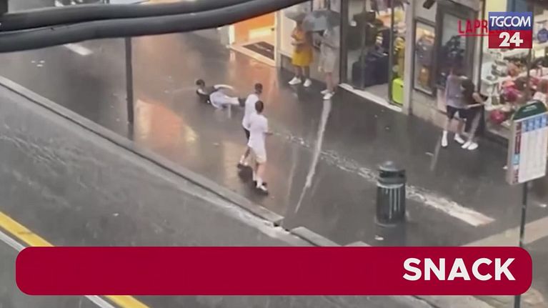 Maltempo a Roma, strade come fiumi: i turisti si tuffano nelle pozzanghere