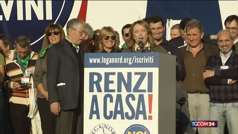 Meloni attacca Renzi (e Bossi va via)