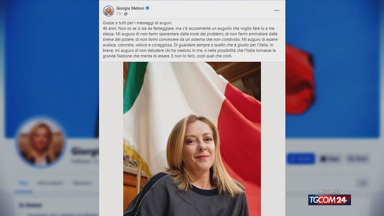 Compleanno e primi 100 giorni di governo per Giorgia Meloni. "Mi auguro di non farmi spaventare dalla mole dei problemi, di non farmi ammaliare dalle sirene del potere, di non farmi convincere da un sistema che non condivido. Mi auguro di essere audace, concreta, veloce e coraggiosa. Mi auguro di non deludere chi ha creduto in me. E non lo farò, costi quel che costi", ha affermato il premier in un messaggio social. Auguri arrivati anche da parte di Silvio Berlusconi