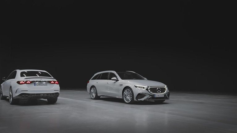 La nuova Mercedes Classe E 53 è la prima 'E' ibrida plug-in con il logo AMG."Esternamente i tocchi di sportività si notano nell'adozione della griglia Panamericana con lamelle verticali e illuminazione, ma anche dai parafanghi anteriori più larghi di undici millimetri, dalle appendici aerodinamiche e minigonne dedicate. Al posteriore è evidente il diffusore con quattro terminali di scarico rotondi.