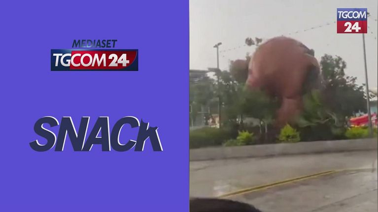 Un orso gonfiabile fuori da un centro commerciale di Cuernavaca in Messico è stato spazzato via durante un temporale con raffiche di vento di oltre 50 km/h.