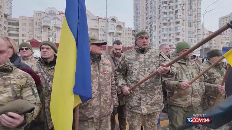 Centinaia di persone si sono raccolte nel centro della capitale ucraina per commemorare i connazionali morti al fronte