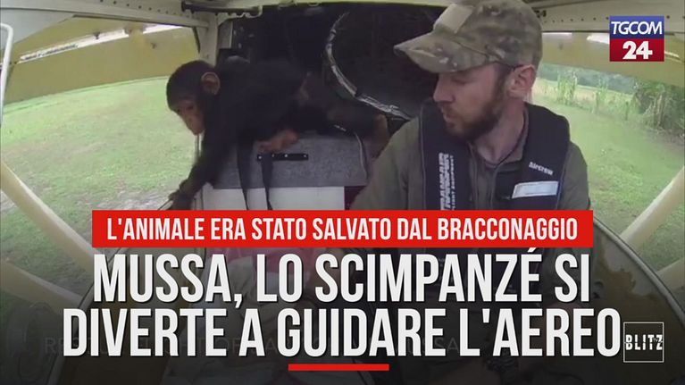Mussa, lo scimpanzé che si diverte a guidare l'aereo
