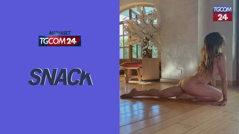 Naike Rivelli fa yoga nuda sul pavimento