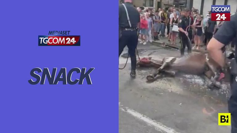 New York, cavallo collassa in strada: il cocchiere lo frusta con le redini